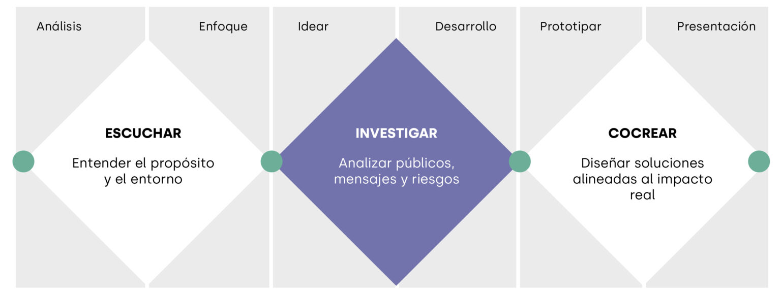 Cada proyecto parte de comprender el contexto, los objetivos y las personas involucradas. Trabajamos desde la escucha, la investigación y la cocreación para que la comunicación no solo se vea bien, sino que funcione.